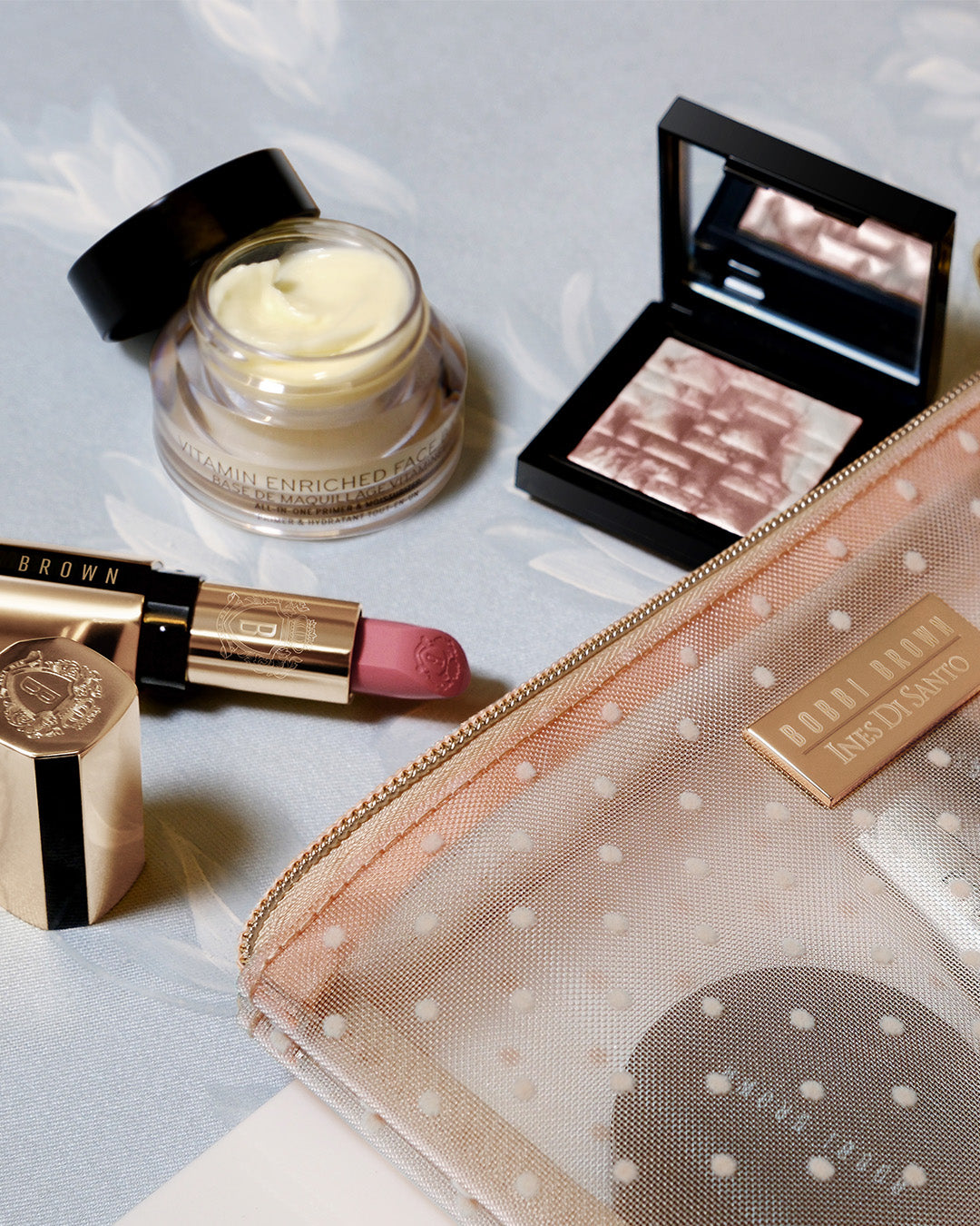 Bobbi Brown has partnered with Ines Di Santo to create a limited-edition makeup bag of beauty essentials perfect for a bride or wedding guest.