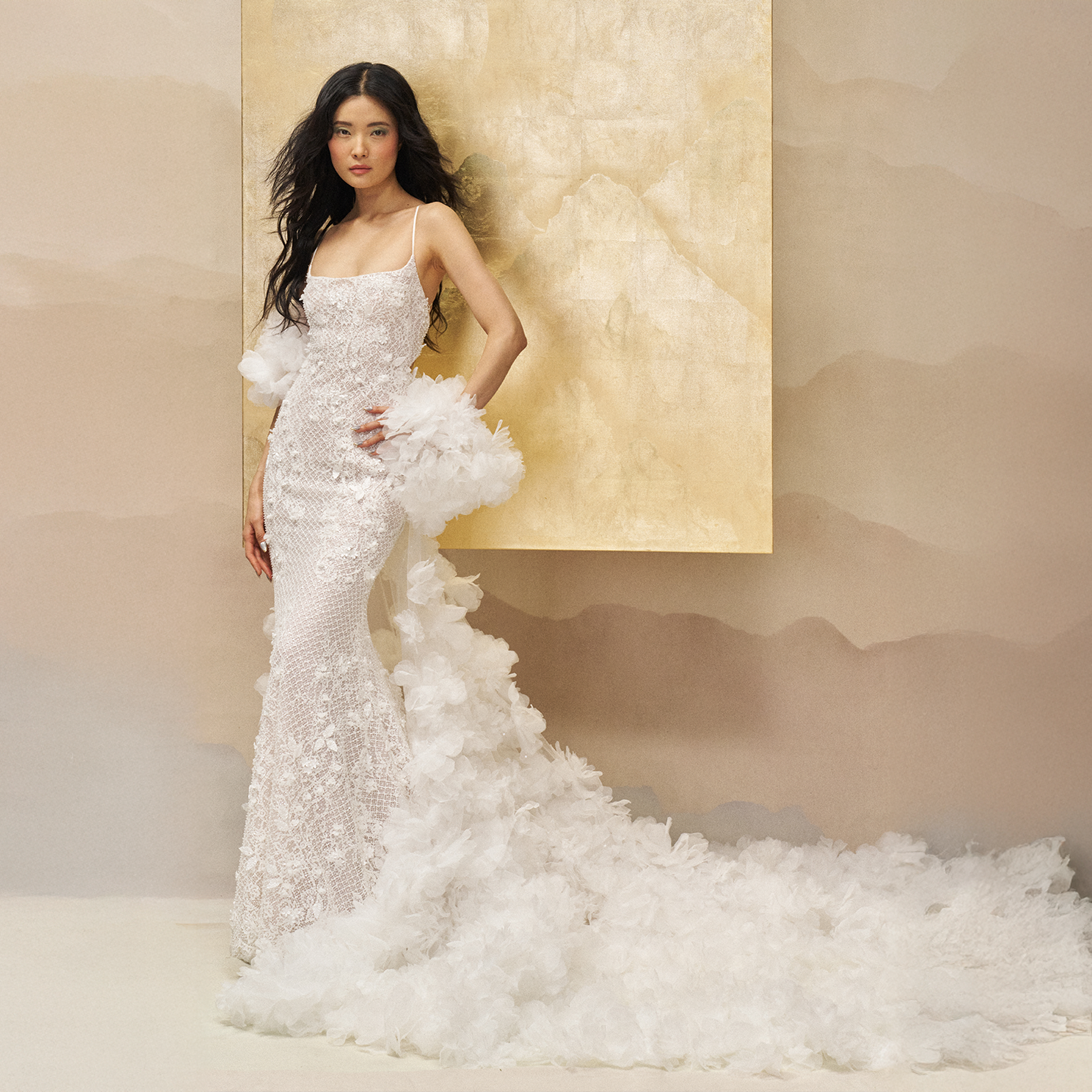 For her Spring 2026 collection, Le Nouveau Jardin, Ines Di Santo draws inspiration from the Art Nouveau movement, embracing its fluidity, organic lines, and intricate textures. This era celebrated the unification of art and life—a philosophy that resonates deeply with Ines’ vision for the modern bride.