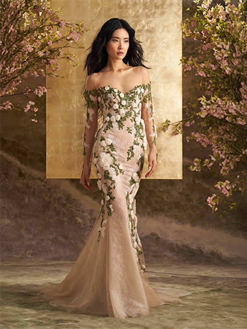 The heritage collection moment: Gowns with artful touches of crochet and embroidery that sparkle with the vibrant magic of the Amalfi coast. Discover feathery textures that float and glisten, and a soulful palette that puts true love on display.